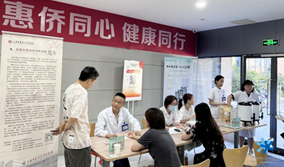簽約同時,結對共建首次主題黨日活動在生命園C區餐廳門口開展,多位惠山中醫醫院的醫護人員利用午休時間開展健康義診及科普宣傳,提供健康咨詢,把脈問診;中醫適宜技術體驗,針灸、微針、耳穴壓豆、刮痧、三伏貼等中醫適宜技術的應用;并奉上養生中藥茶飲。